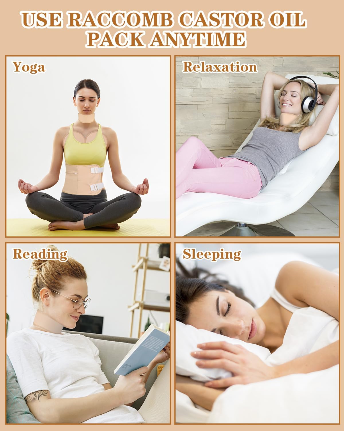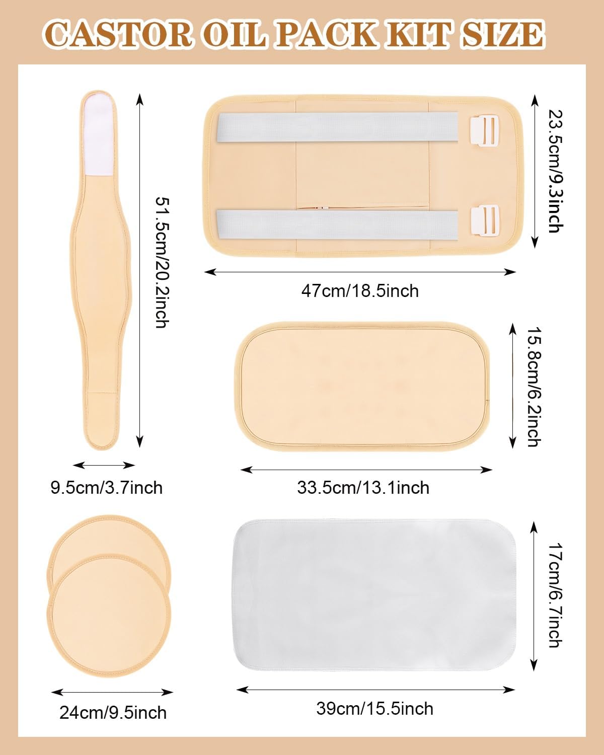 Castor Oil Pack Wrap Kit - Castor Oil Packs for Women, Adjustable Castor Oil Wrap for S to Plus Size, Organic Castor Oil Body Compress Pack Wraps for Entire Body Stomach Neck