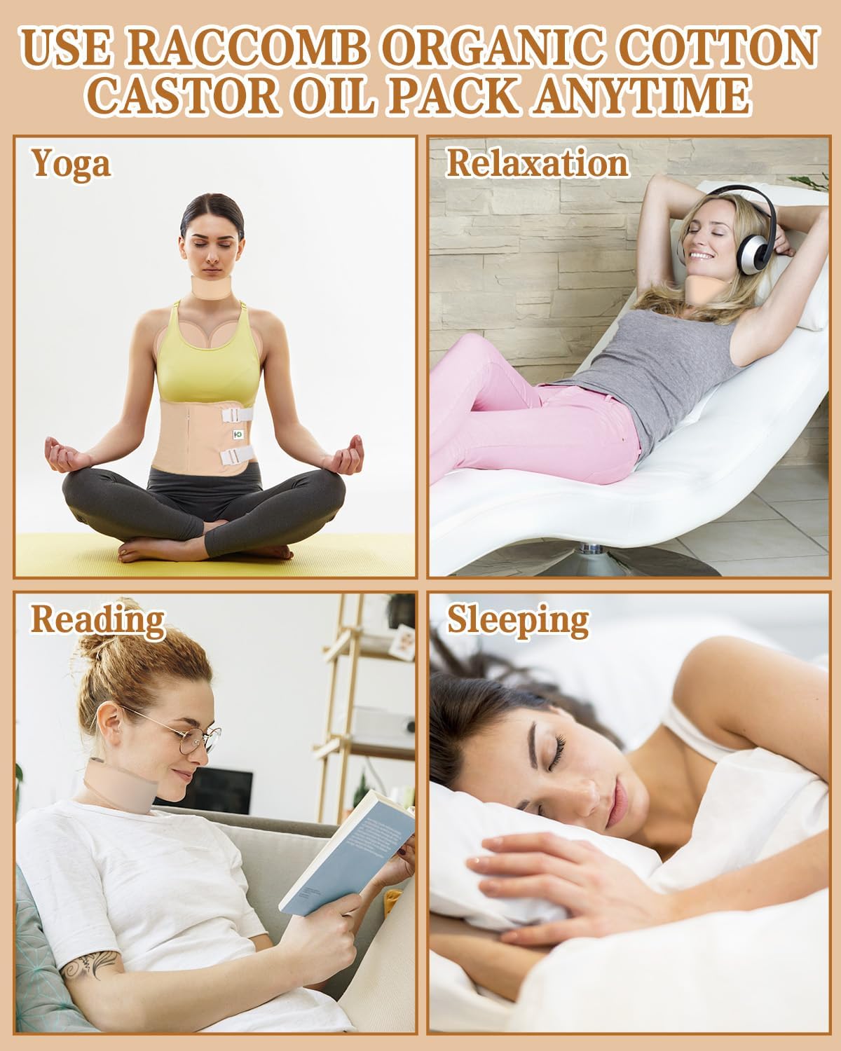 - Organic Cotton Castor Oil Packs : The inner layer of the castor oil packs is made of certified organic cotton, which improve utilization, less mess and reusable. The outer layer of the organic castor oil wrap helps prevent oil leakage. (This organic castor oil pack kit does not contain castor oil)